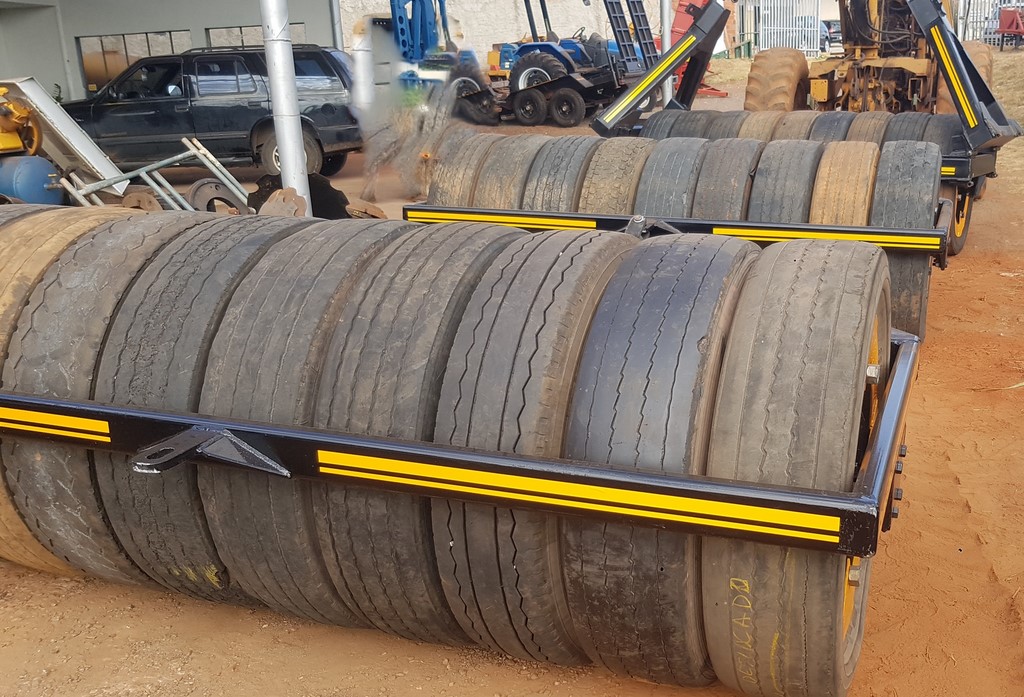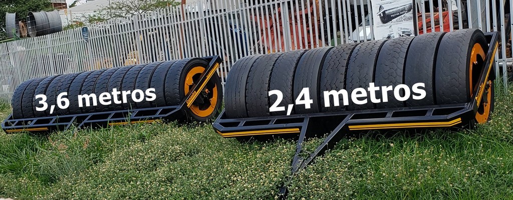 Única operação distribui semente a lanço (com distribuidor montado no hidráulico de três pontos do trator) e ao mesmo tempo, arrasta o rolo compactador no rabicho do trator, desviando a semente para o solo na frente do rolo, permitindo uma perfeita semeadura e boa compactação.